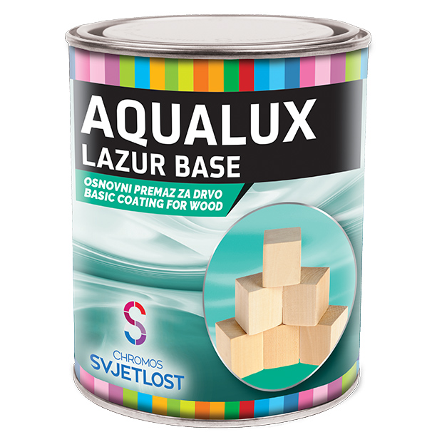 AQUALUX LAZUR BASE za drvo prikladna je za sve vrste drva. Na elementima izloženim vremenskim promjenama (prozori, napusti, ograde i slično), obvezna je kao biozaštitna podloga u sustavu s AQUALUX LAZUROM. Nanosi se uranjanjem, valjkom ili kistom na suho, čisto i dobro obrušeno drvo. Nakon sušenja od 2 do 3 sata može se nanositi AQULAUX lazura. Sve dok drvo upija može se koristiti u stambenim prostorijama s dobrim prozračivanjem.