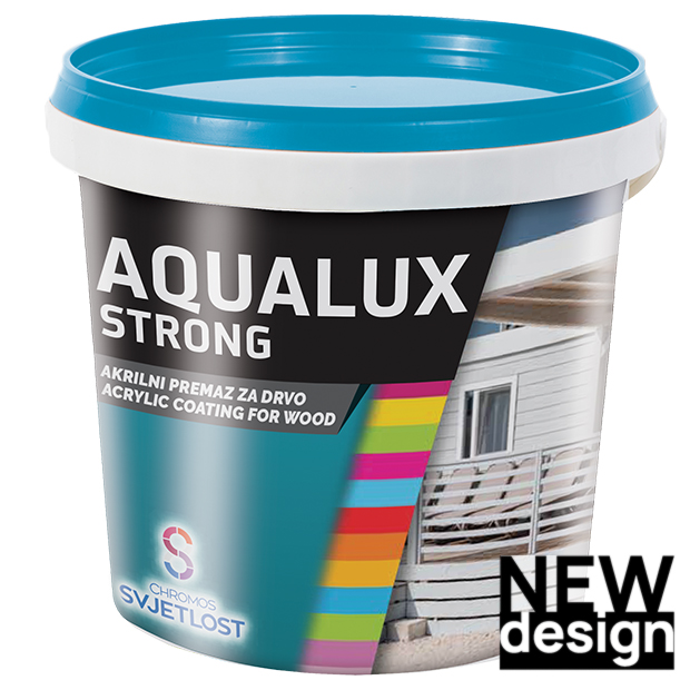 AQUALUX STRONG je vodeni premaz na bazi akrilne smole za zaštitu i dekoraciju drvenih površina sa izvrsnom pokrivnom moći čiji film pruža zaštitu od gljivica, plijesni, algi i prirodnog starenja drveta. Koristi se za dekoraciju te obnavljanje tretiranih drvenih površina. Namijenjen je za unutarnju i vanjsku uporabu na drvenim površinama (drvene konstrukcije, zidne ploče, drvene fasade, ograde, lajsne, šperploče, itd.) koje će biti podvrgnute većem utjecaju vlage. Koristi se za bojanje novih, prethodno bojanih ili tretiranih fungicidnim sredstvima te vremenom potamnjelih drvenih površina kao i za posvjetljivanje tamnih nijansi premaza. Proizvod je preporučljivo nanositi na suho drvo (maksimalna vlažnost drveta 10 %) zbog bolje apsorpcije u strukturu drveta.