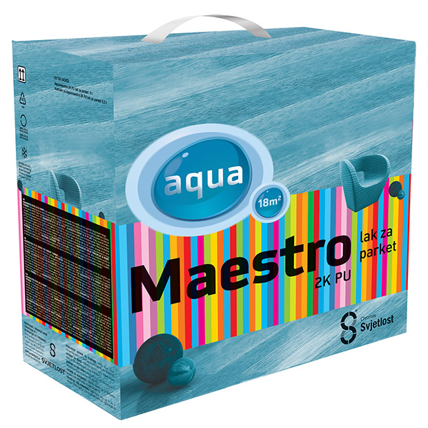 AQUAMAESTRO 2K PU lak za parket je poliuretanski dvokomponentni vodeni bezbojni lak za zaštitu i dekoraciju parketa i drugih drvenih obloga.